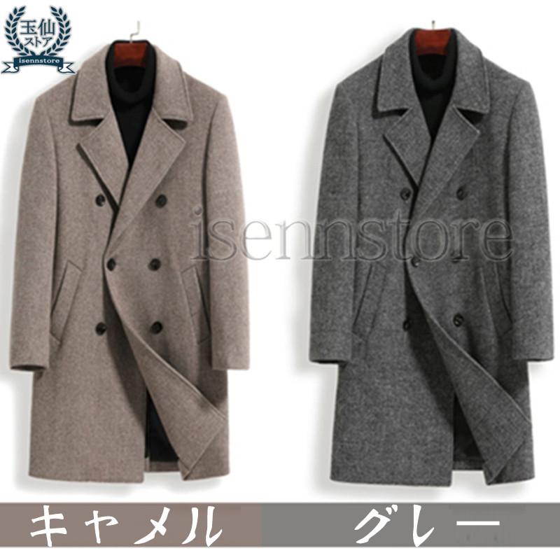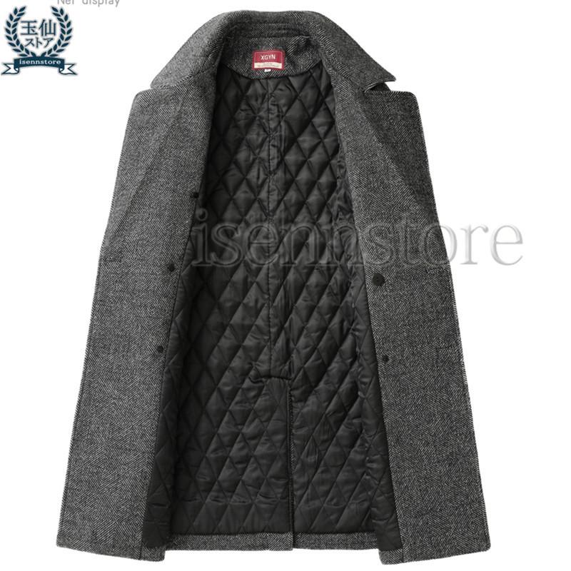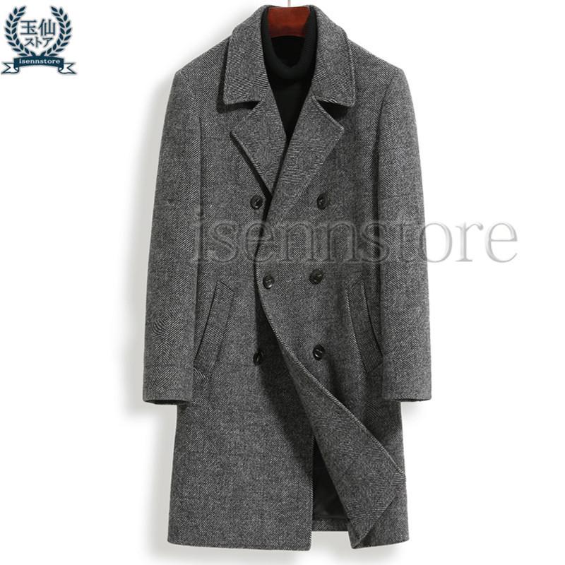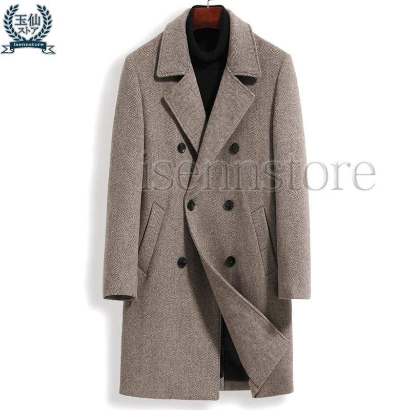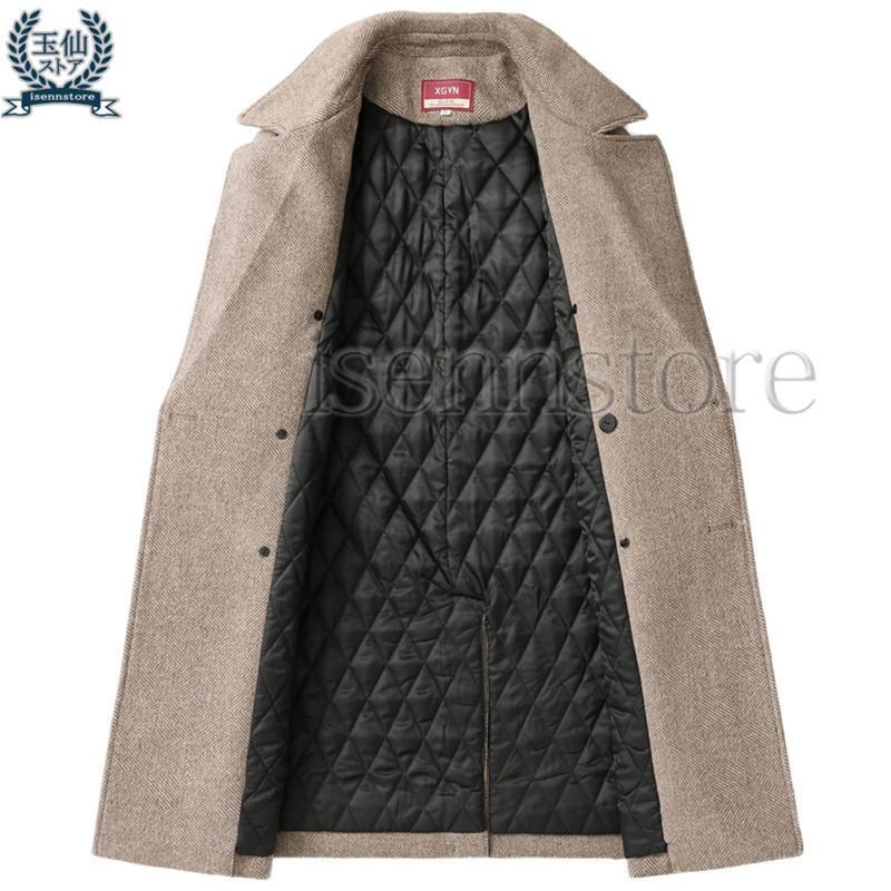 ウールコート メンズ ロングコート 中綿入り ビジネスコート ダブルボタン 秋冬 チェスターコート 厚手 カシミヤタッチ 紳士服 暖かい40代50代60代