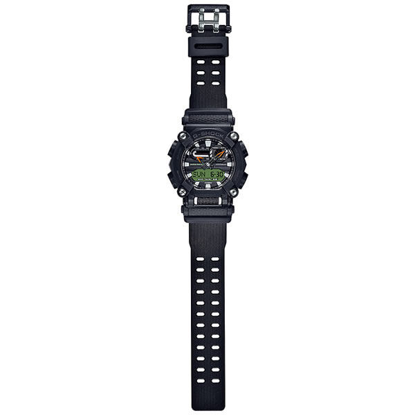 1983年の発売以来、飽くなき強さを求めて進化を続けるタフネスウオッチG-SHOCKから、タフな環境でも使用できストリートファッションとしても活躍するヘビーデューティーなモデルGA-900が誕生。工業デザインをモチーフにナットのような10角ベゼル部の四方にビス留めし、武骨であり堅牢なタフの王道デザインに仕上げました。タフネスとファッション性を求めたG-SHOCKの新たなシリーズの登場です。【型番】GA-900E-1A3JR【素材】ケース/ベルト:樹脂【サイズ】ケース:(約)縦52.8×横49.5×厚さ16.9mm【カラー】文字盤:ブラック、ベルト:ブラック【ムーブメント】クオーツ【機能】耐衝撃構造(ショックレジスト)、針退避機能、ワールドタイム+UTC(協定世界時)の時刻表示、UTCダイレクト呼出機能、ホームタイムの都市入替機能、ストップウオッチ、タイマー、時刻アラーム5本・時報、フルオートカレンダー、12/24時間制表示切替、操作音ON/OFF切替機能、LEDライト、精度:平均月差±15秒、電池寿命:約7年、LED:ホワイト【防水】20気圧防水【付属品】・専用BOX、説明書、保証書、替えベルト(クロス)【JANコード】4549526274466