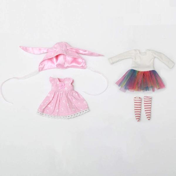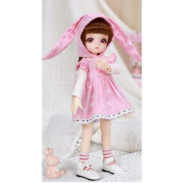 ファッションの女の子の人形の服は1/6 BJD SD人形の服の完全なセットでドレス帽子靴下アクセサリーかわいいピンク色