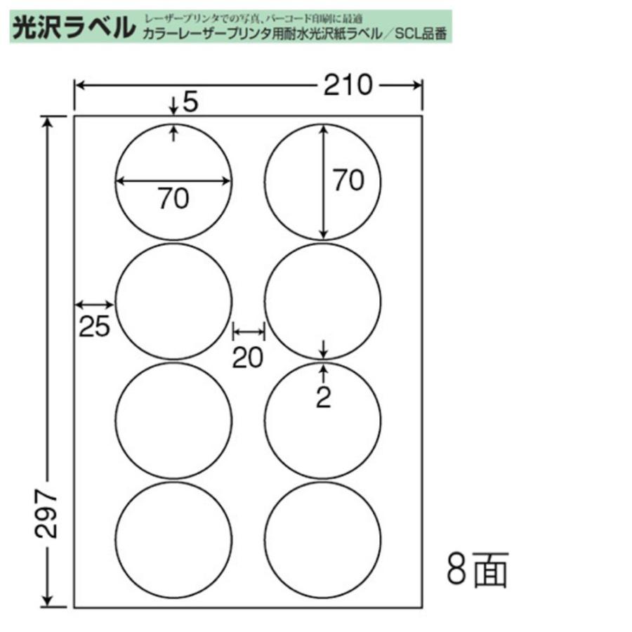 ■メーカー:東洋印刷(nanaクリエイト)★レーザープリンター用光沢紙ラベル■品番:SCL-51■カラー、モノクロレーザープリンタ用■シートサイズ:A4(297×210mm)■面付:8面■円形ラベル■ラベルサイズ:直径70mm■400シート入り(ラベル3,200枚分)*こちらは1ケースでご購入のページです★お求めいただく数量で単価が変わります■基本特価の1ケース単位=441-0138(当店注文番号)■お得な2ケースセット=442-0138(当店注文番号)★更にお得な4ケースセット=444-0138(当店注文番号)★超お得な6ケースセット=445-0138(当店注文番号)★業務用大特価【<a href="https://store.shopping.yahoo.co.jp/sbd/446-0138(当店注文番号)・メーカー:東洋印刷