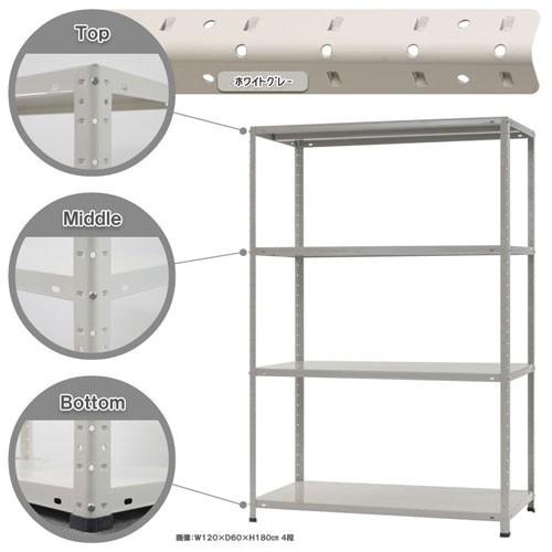 スチールラック・スチール棚の通販!2,500種類以上のスチールラック・スチール棚がどこよりも安く、送料無料!●商品名:KTラック KT-6-18●型式:呼称:幅120×奥行60×高さ180cm 外寸:幅120.8×奥行60.8×高さ180cm●段数:4段(棚板枚数) 5cmピッチ●カラー:ホワイトグレー●オススメポイントワンボルトタイプで組立簡単、しかも耐荷重150kgと丈夫で使いやすいスチールラックです。スチールラックの中で、とても売れているシリーズです。「所ジョージの世田谷ベース」の雑誌や「マスカレードナイト」の映画にも使用された商品です。床から最下段までの間の高さは 70mmです。支柱の高さを5cmピッチで1本 100円でカットが可能です。※ミリ単位の誤差はございますのでご了承下さい。また、カットした部分の塗装はございません。●検索用送料無料 棚 ラック スチールラック スチール棚 収納ラック 収納棚 業務用ラック 業務用棚 倉庫ラック 倉庫棚 物置 収納家具 キタジマ 北島 北島株式会社 安い おすすめ 人気 KT-6-18 KTラック ホワイトグレー 幅120 奥行60 高さ180 幅1200 奥行600 高さ1800 4段W120D60H180
