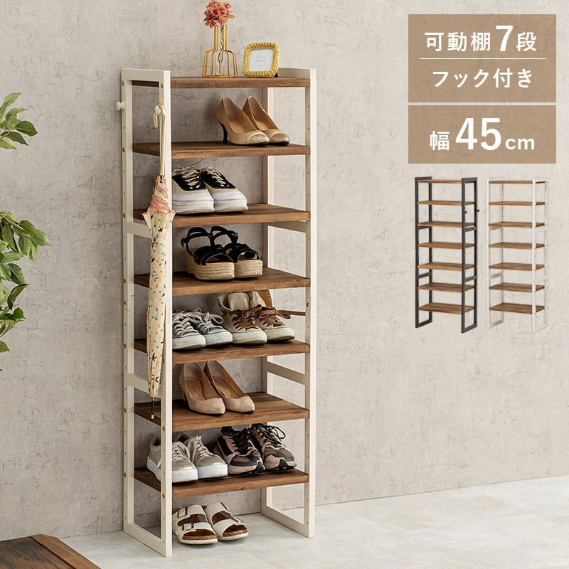シューズラック オープンシェルフ 下駄箱 靴棚 シューズボックス 7段 幅45cm 奥行スリム 木製 可動棚 高さ調節 オープンラック 玄関収納棚