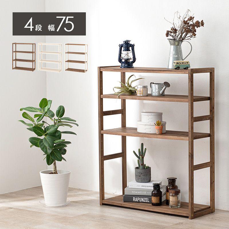 オープンラック 75cm 4段 木製 ホワイトウォッシュ 収納棚
