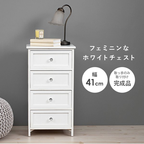チェスト おしゃれ 木製 収納 幅40 ほぼ完成品 白 4段 引き出し 引出し 北欧 キャビネット タンス たんす 棚 かわいい 可愛い 姫系 新生活 ID005