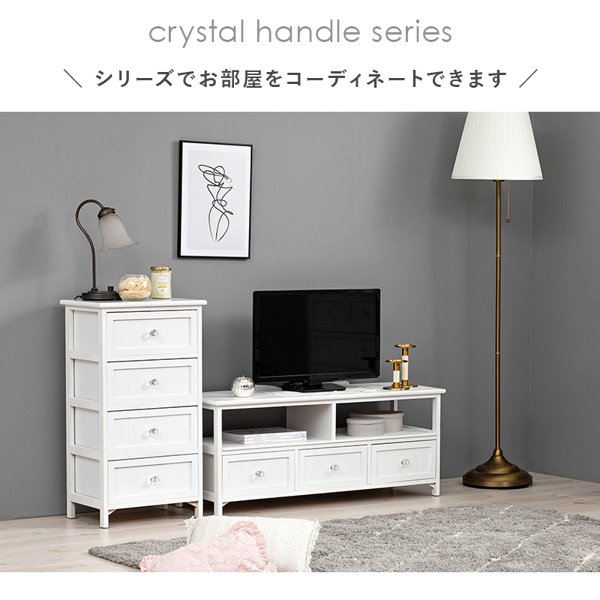 使いまわしの良いホワイトチェスト。クリスタル調取っ手が引き立ちます。配達業者を指定いただくことはできません。北海道/沖縄/離島のお届けに別途中継料金が発生します。※別途送料が発生する場合は後ほどご連絡させていただきます。当店は正規店です。タイミングによっては在庫切れの場合があります。"}