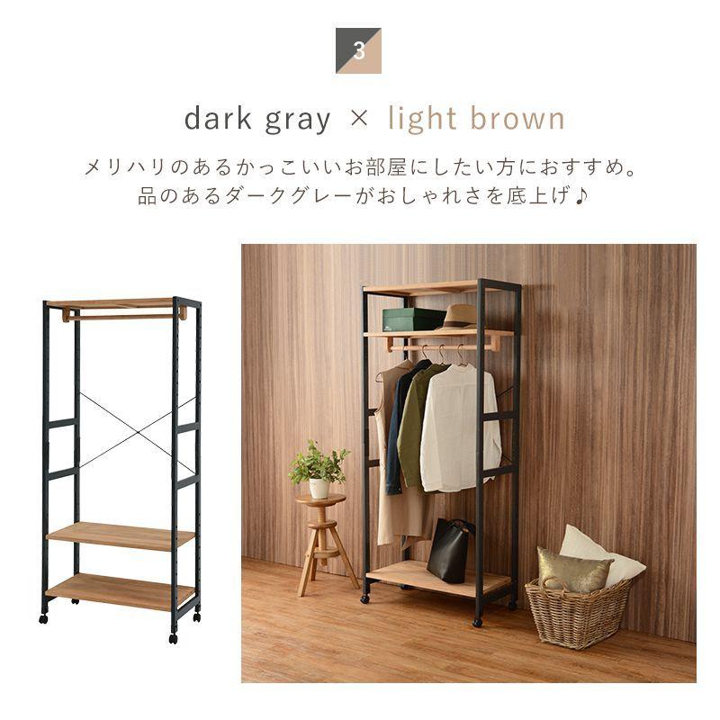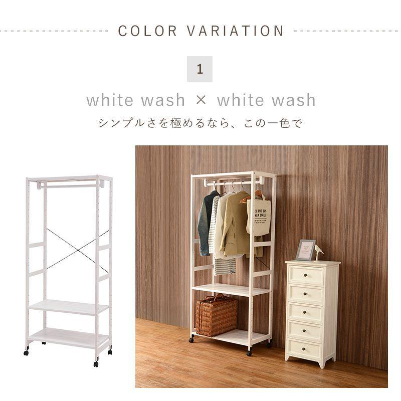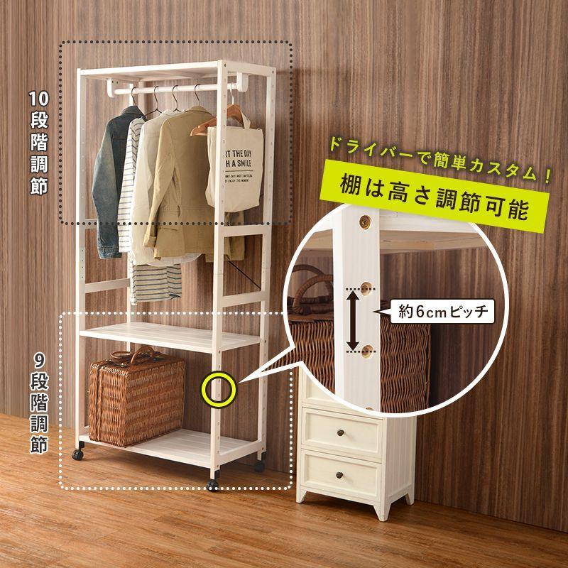 コートハンガー おしゃれ 2段棚付き キャスター付き 収納 幅77 ハンガーラック