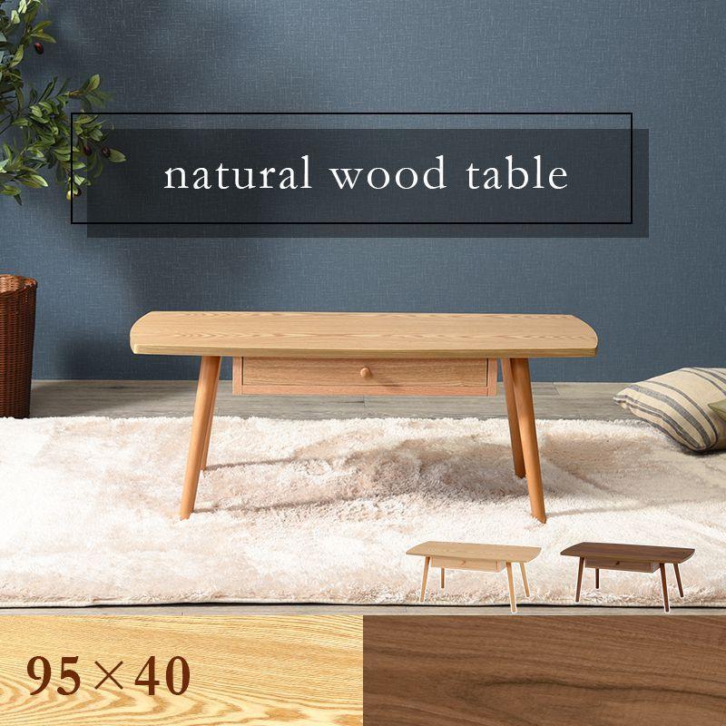 リビングテーブル 95cm 長方形 おしゃれ 引き出し付き 木製