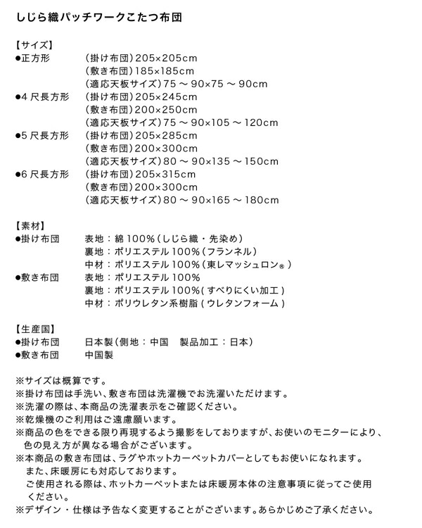 しじら織パッチワークこたつ布団 こたつ用掛け布団単品 4尺長方形(80×120cm)天板対応