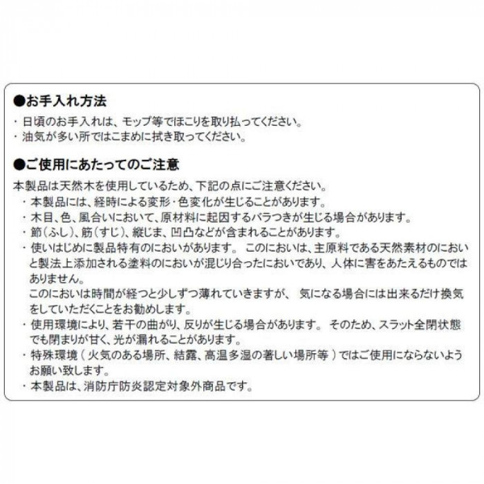 | 天然木ならではのやさしい風合いが、ゆったりした癒しの空間を演出します。 普段はオープンにして使いやすく、急な来客の時はサッと目隠し。インテリアとしても素敵です。 サッと開け閉めできる簡単な操作、小さな窓におすすめ。 どんな窓にも馴染むスタンダードなスラット。ウッドならではの質感を存分に楽しめるのも魅力です。 ※モニターの設定などにより、実際の商品と色味や素材の見え方が異なる場合がございます。あらかじめご了承ください。 |