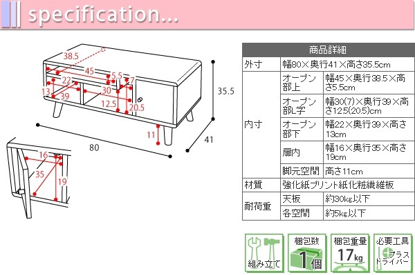 *サイズ:約)〔外寸〕 幅80.0×奥行41.0×高さ35.5cm