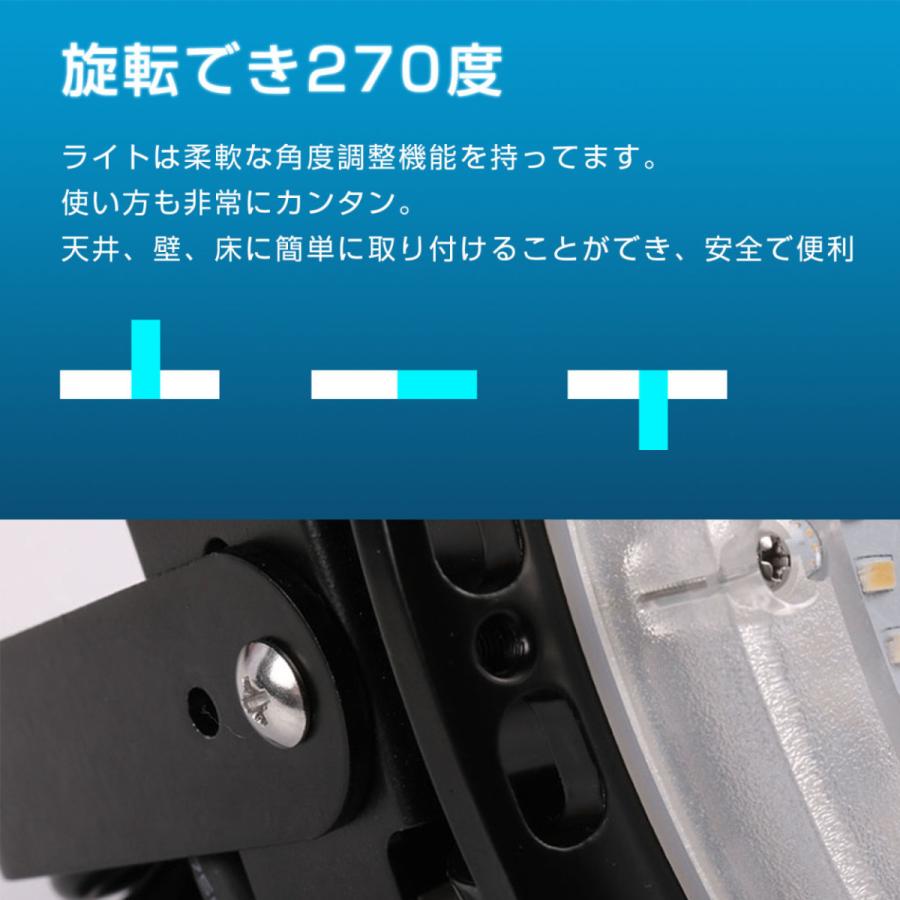 夜間作業灯、駐車場、公園、運動場、体育館、広場、倉庫、天井照明、ホール、工場、物流センター、工事現場、トンネル内点検、農場、屋外広告灯、ポーチ、歩道、庭園、温室、ガーデン、デッキ、階段、ガレージ、私道、裁判所、防犯灯様々場所に活躍