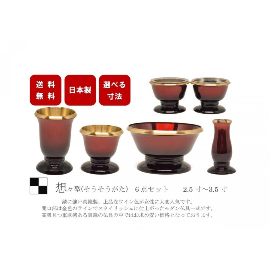 モダン家具調仏具6点セット 『想々型』 2.5寸 ワインレッド色(黒グラデーション) 国産高岡製 高級真鍮 送料無料 安い