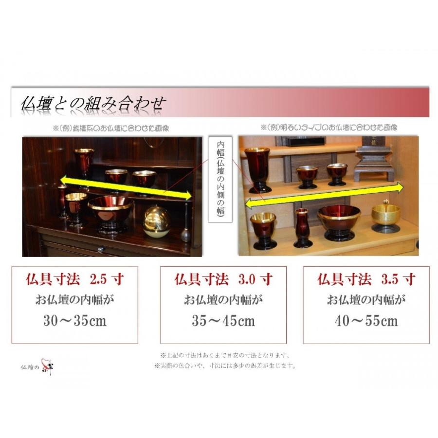 | 寸法 | 花立て | 火立て | 香炉 | 線香差 | 茶湯器 | 仏飯 |