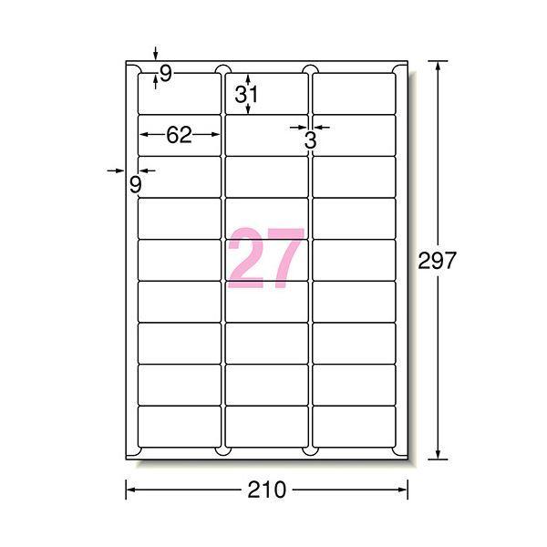 【商品名】 (まとめ)エーワンラベルシール[レーザープリンタ] マット紙・ホワイト A4判 27面 62×31mm 四辺余白付 角丸 662271冊(100シート)【×3セット】 【ジャンル・特徴】 定番面付けのエーワンプリンターラベル。 [ 66227 ]"} ■商品内容