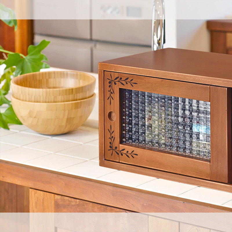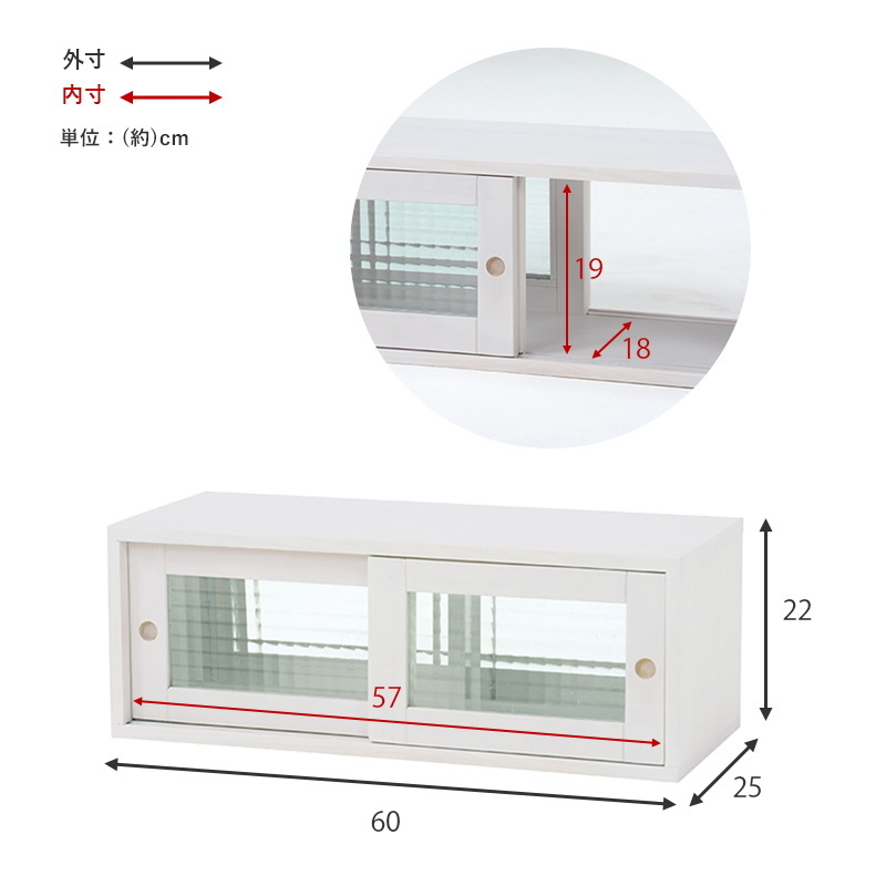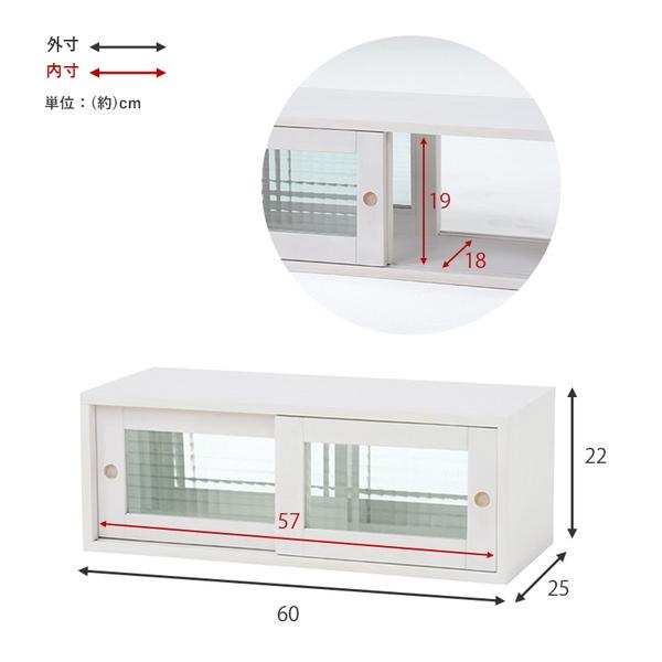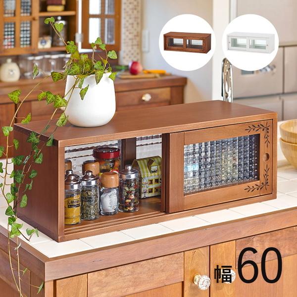 ■商品説明生活感を出さずにお洒落に収納!格子ガラスの引戸カウンター上収納ラックです。●両側から使う事を想定して、前と後ろにガラスの引き戸がついています。●キッチンカウンター等に設置をすれば、両側から取り出せて便利にお使い頂けます。●どこから見てもお洒落なデザインなので、お部屋の目立つ場所にも設置ができます。●生活感を隠すモザイクガラス製の扉は、見られたくない棚の中身をお洒落に隠せます。●調味料、スパイス、乾物、乾きもの、小物のストッカーとしておすすめのサイズです。●ナチュラルなブラウンカラーと、白で統一したい方にホワイト色の2カラー展開。■商品詳細サイズ(約):幅60×奥行25×高さ22cm内寸(約):幅57×奥行18×高さ19cm素材:主材:パイン材