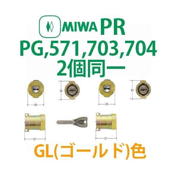 美和ロック,MIWA PR-PG,571,703,704 GL(ゴールド塗装)色2個同一シリンダー MCY-493