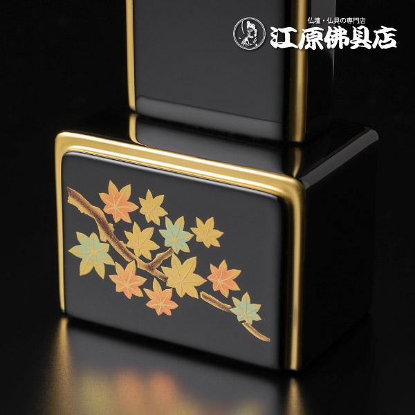 『最短3日で発送/文字入れ無料』花宝 黒面粉 蒔絵入り 紅葉 4.0寸 唐木位牌 蒔絵位牌 モダン 家具調位牌