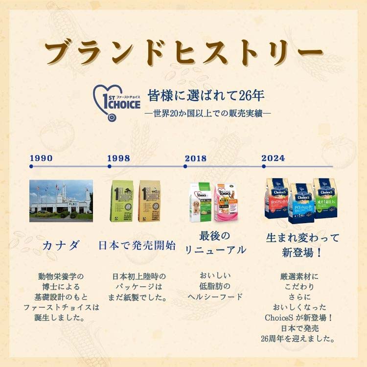・他のフードからファーストチョイスに切り替えるとき、これまでのフードに少しずつ混ぜ、ファーストチョイスの比率を徐々に増やしながら、1週間程度かけて完全に切り替えてください。
