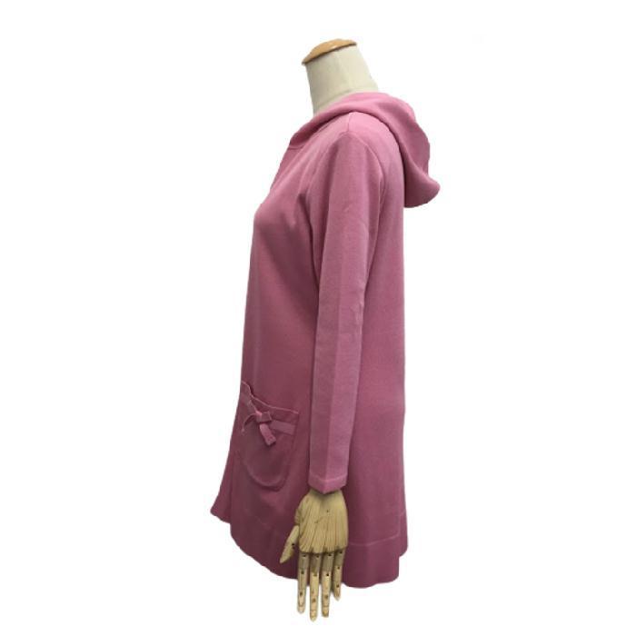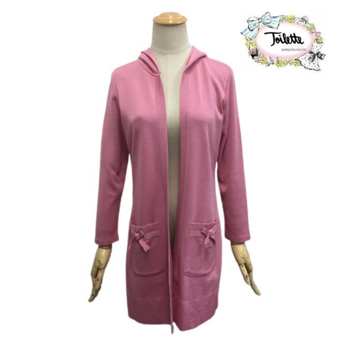 トワレ toilette フード付き ロングカーディガン リボンポケット ピンク M サイズ1 大人かわいい服 ディリーウェアー