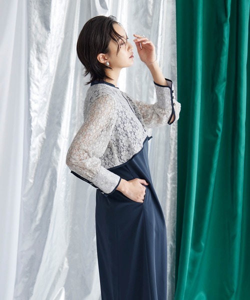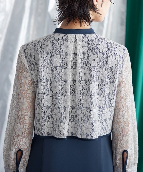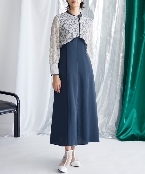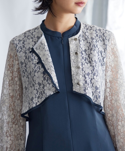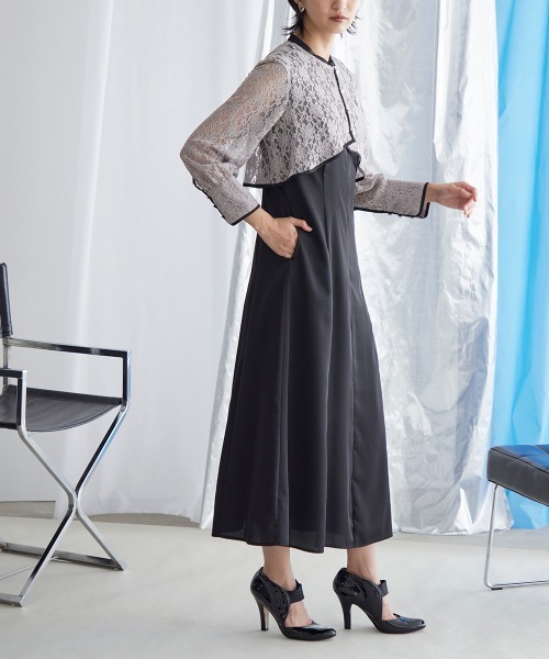 ドレス 「Callarus」「結婚式・お呼ばれ・パーティー・オケージョンドレス」レースボレロドッキングデザイン前開きワンピースドレス レディース