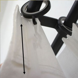 100cm幅の仕上がり寸法に対して、150cm幅の生地を使用して、ドレープを作っています。