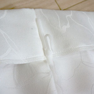 形状記憶加工とは違い、型にあててウェーブをだすわけではなく、カーテンの状態に合わせて1ウェーブずつ手作業で調えていきます。ご家庭の洗濯機で丸洗いでき、おおよそ1〜3回程度のお洗濯後もプリーツ加工は損なわれません。