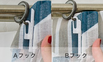 既製品にはBフックが付属し、オーダーサイズはA・Bどちらかをお選びいただけます。