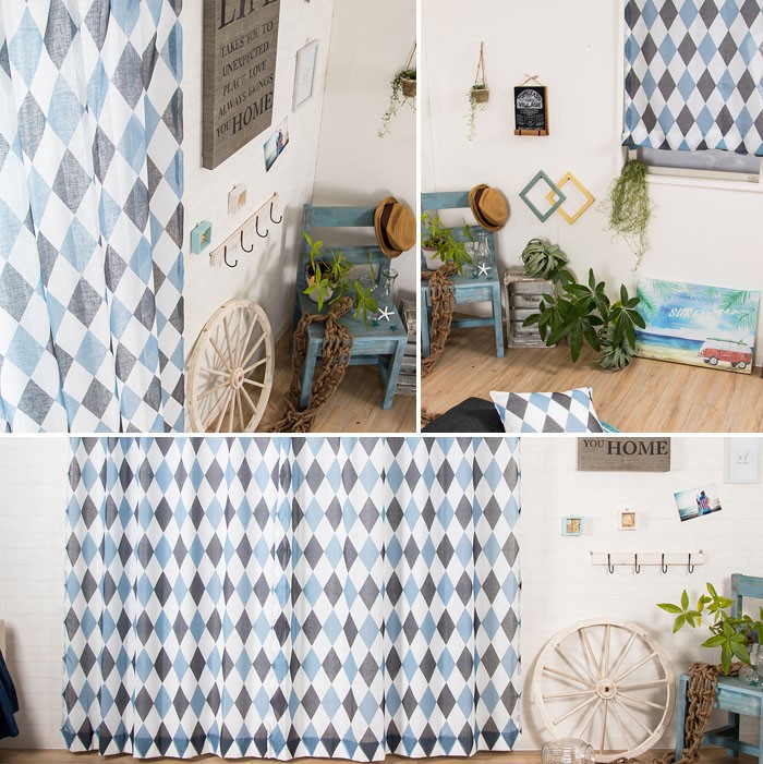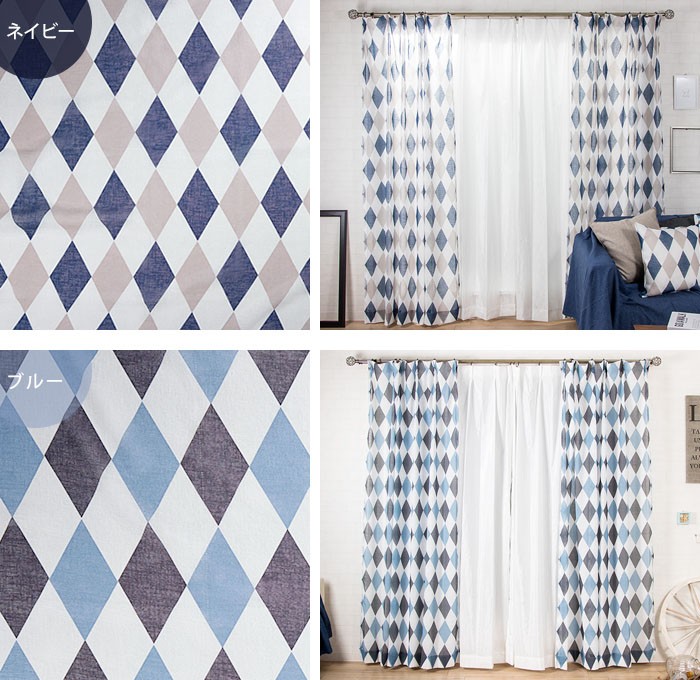 ネイビー×ベージュ、空色のようなブルー×グレーの可愛いハーリキンチェック■商品名:YH975クローネ▼サイズ:巾45〜100cm×丈50〜100cm■仕様:・2ツ山タック 1.5倍ヒダ仕様 or フラット仕様・裾8cmダブル仕上げ・共布タッセル付き(1枚につき1本)・アジャスターフック(1枚あたり)巾〜250cm・・・17コ■機能:ウォッシャブル(手洗い)■幅継ぎ:巾91cm以上は幅継ぎが入ります■付属品:・共布タッセル・アジャスターフックAタイプorアジャスターフックBタイプ└カートにてA・B選択制スカンジナビア,デザイン,北欧,輸入カーテン,レースカーテン,デザインカーテン,Bohoスタイル,ボヘミアン,ソーホー,民族,ボタニカル,マリン,シアー,スカンジナビアモダン,ブラック,ブルー,ネイビー,ひし形,ハーリキンチェック,市松格子