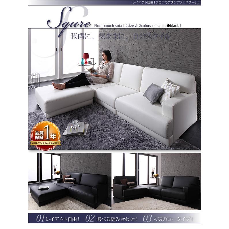 レイアウト自由 フロアカウチソファ SQURE スクーレ オットマン ホワイト