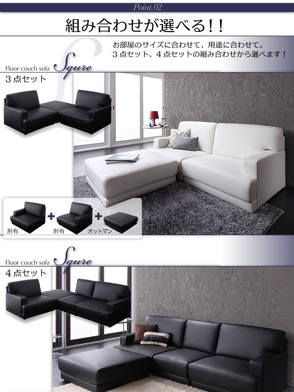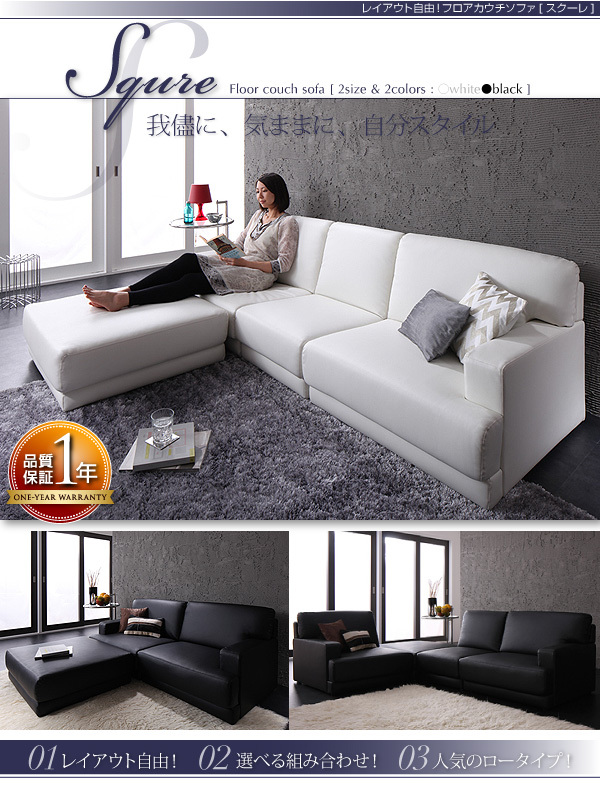 ![]() ![]() ![]() ![]() ![]() ![]() ![]() ![]() ![]() ![]() ![]() ![]() ![]() ![]() ![]() ![]() 我儘に、気ままに、自分スタイル レイアウト自由!フロアカウチソファ【SQURE】スクーレ レイアウト自由! 選べる組み合わせ! 人気のロータイプ! ----------スタイル自由自在!!------------------------------------------ カウチスタイル オットマンを好きな場所において、ゆったりくつろぐL字のカウチスタイル。右に、左に、中央に、お好きな場所で寛いでください。 ・コーナースタイル オットマンをコーナー部において、コーナースタイル。お部屋が上質な雰囲気に。 ・対面スタイル テーブルをはさんで。お客様が来た時に、便利なスタイル。 ・パーティスタイル 大人数の来客があった時には、全てのソファを単独で使用する事もできます。 カラー違いで2セットを組み合わせれば、オシャレな空間に!大人数も余裕で対応 ・ストレートスタイル 全て一列に並べれば、 横幅294cmの大きなソファになります!大人5人が、ゆったりと余裕で座れます! ・テーブルスタイル オットマンの表面は平らで、大きめなので、ちょっとしたテーブルとしても使用できます。 ------------組み合わせが選べる!--------------------------------------- お部屋のサイズに合わせて、用途に合わせて。3点セット、4点セットの組み合わせから選べます! 3点セット 4点セット お部屋に合わせて、サイズが選べます! 3点セットをカウチ使用した場合、横幅160cm。ふたりで、ゆったりと座りたい方、一人暮らしでくつろぎたい方にぴったり。 4点セットをカウチ使用した場合、横幅214cm。余裕で3-4人まで座れるサイズなので、ファミリーにぴったりです。 -----------お部屋広々ロータイプ。-------------------------------------- 部屋が広く感じられるロータイプ。高さが無いので、目線が奥に広がり、圧迫感を感じにくくなります。 汚れに強い、レザータイプ。 水分と汚れに強い合皮素材。小さなお子様がいたり、ペットがいるご家庭には最適の素材です。 座り心地。 座り心地は、柔らかすぎない、しっかりとした座り心地。 ソフトなウレタンで体重を受け止め、Sバネが心地よい反発を作りだします。 ---------------------------------------------------------------------- オットマンは単品販売もしています。 ・3点セット+オットマン・・・・ふたりがゆったりと脚を伸ばしてくつろげるスタイル。 ちょっとした簡易ベッドにも。 ・4点セット+オットマン・・・・大人数収容可能!ふたりでごろごろとくつろぎたい方にもお勧めです! 選べるカラー! ホワイト 真っ白なホワイト!黄ばみの無い、まっさらな白です。お部屋を上質に見せます。 ブラック 上品なブラック。シックな雰囲気に変わります。 |