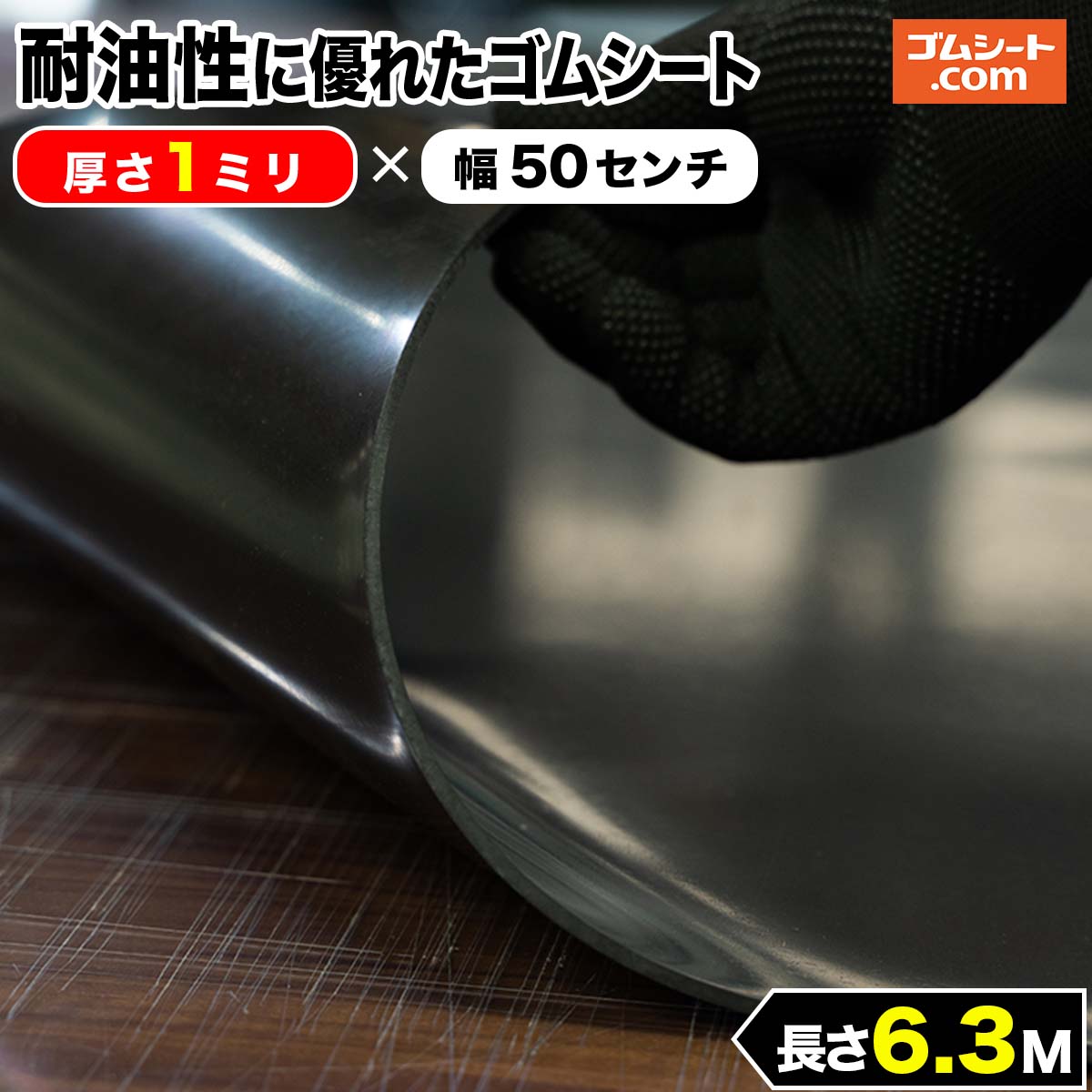 耐油性に優れたゴムシート 1mm厚×幅0.5M×長さ6.3M NBR ゴムマット