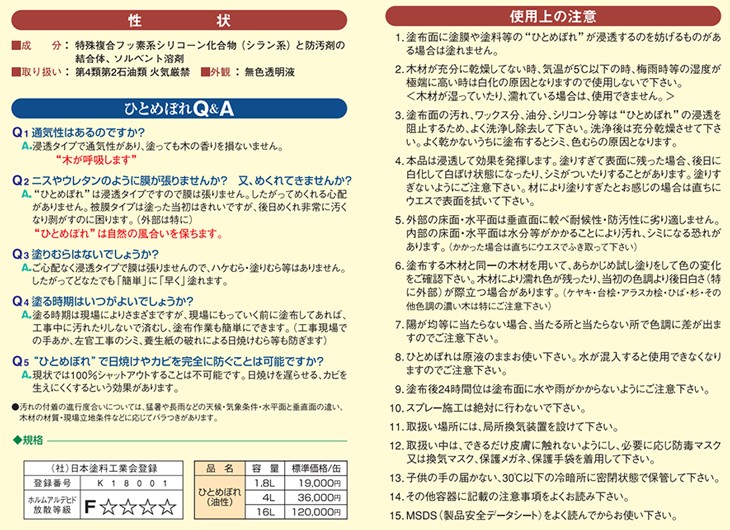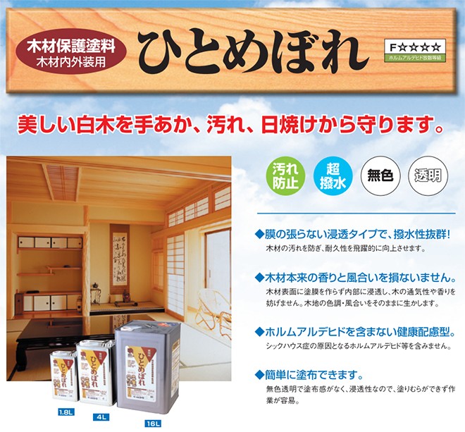 健康配慮型 白木用保護防汚剤 ひとめぼれ 油性 1.8L 1缶 送料無料