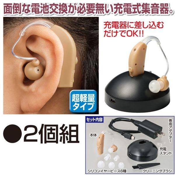 【新品】集音器 充電式 超 軽量 簡単音量調節 電池交換不要 2個組〔〕