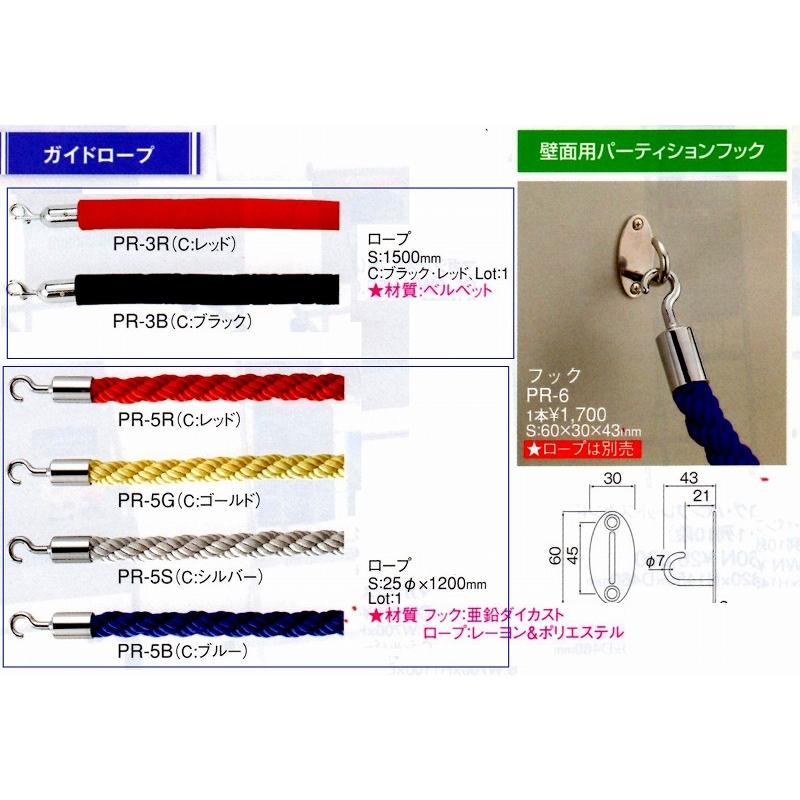パーティションポール ガイドロープ PR-5S シルバー 材質・レーヨン/ポリエステル フック:亜鉛 えいむ