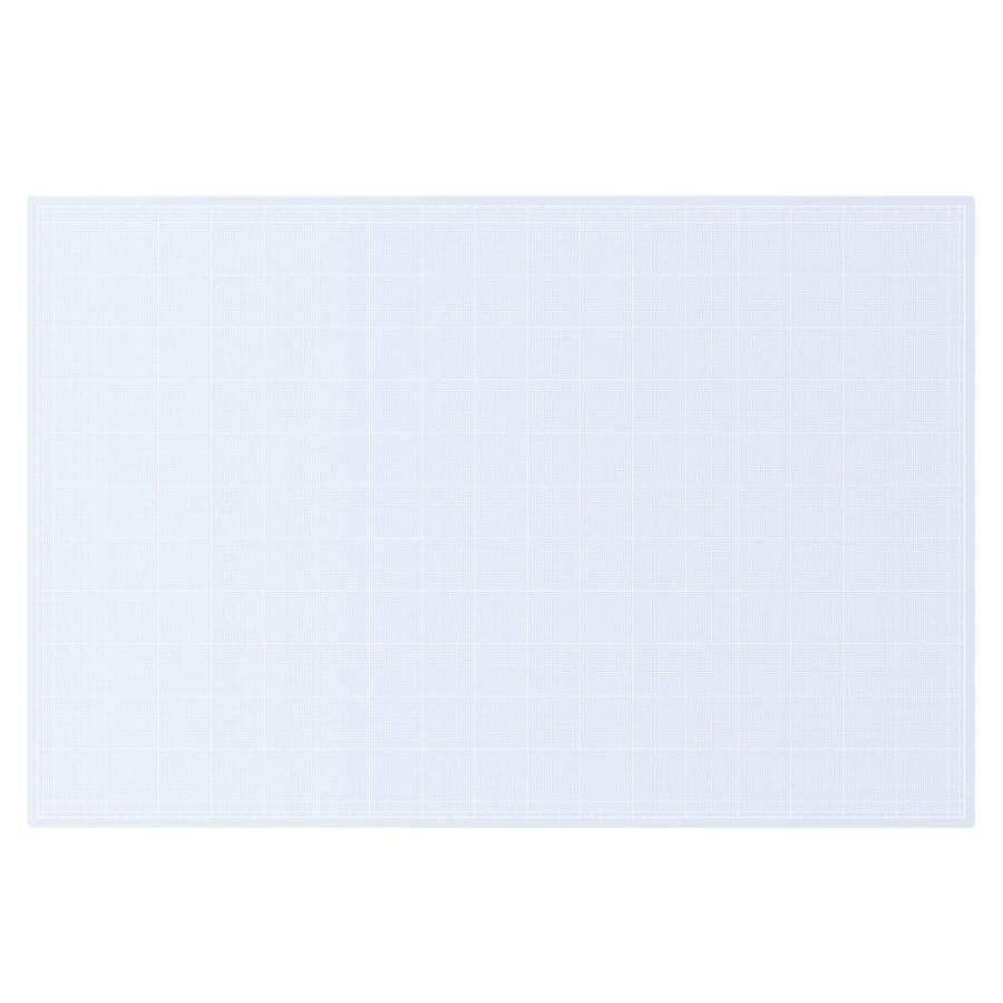 表裏面に透明、中芯に乳白色のシートを使用しているので、トレース台の光を透過することができるカッティングマットです。周囲に1cm間隔の目盛りと、5cm方眼が印刷されているので寸法切りも簡単です。 |