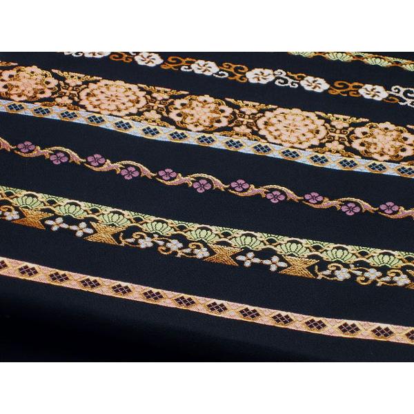 格調の高い帯です。色留袖、黒留袖、訪問着によく合います。帯自体が能装速のような重みがあり、模様が地が見えないほどに織り込まれているので、着物との取り合わせが大切です。光らないので格の高い茶席にもよく会います。