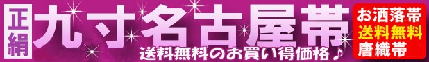 帯==袋帯、名古屋帯は仮の帯であるという感覚が広まっているように思えてならない。帯には種類がいろいろあり、それぞれにその使命が有る。晴着の重厚さを演出する袋帯から普段着の半幅帯(小袋帯)に至までそれぞれが必要とされる場があるのである。 織の名古屋帯は豪華なフォーマル用の袋帯と、カジュアルな染帯との中間的存在と思っていただければ良いと思う。