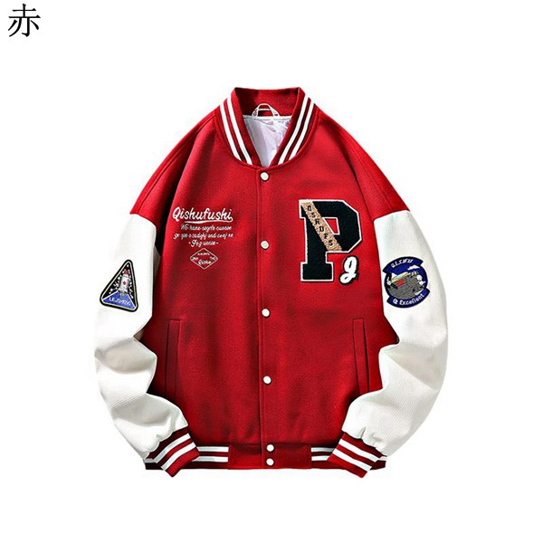 スタジャン スタジアムジャンパー メンズ ブルゾン アメカジ パッチワーク 野球服 ワッペン刺繍飾り 秋冬着 防風 保温性 オーバーサイズ