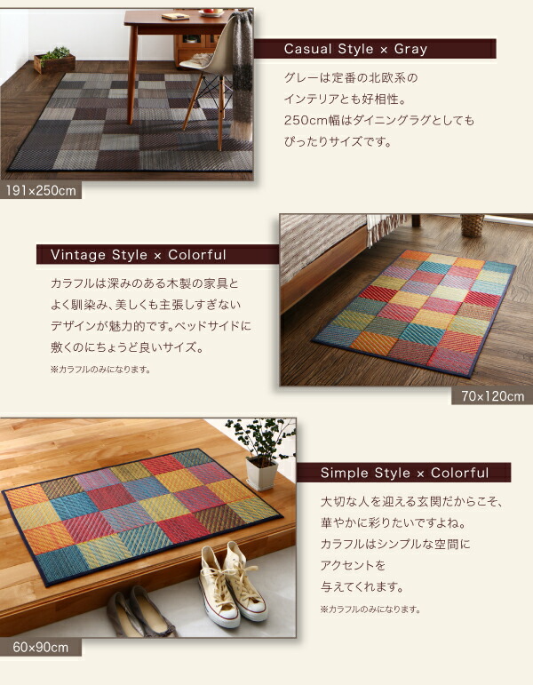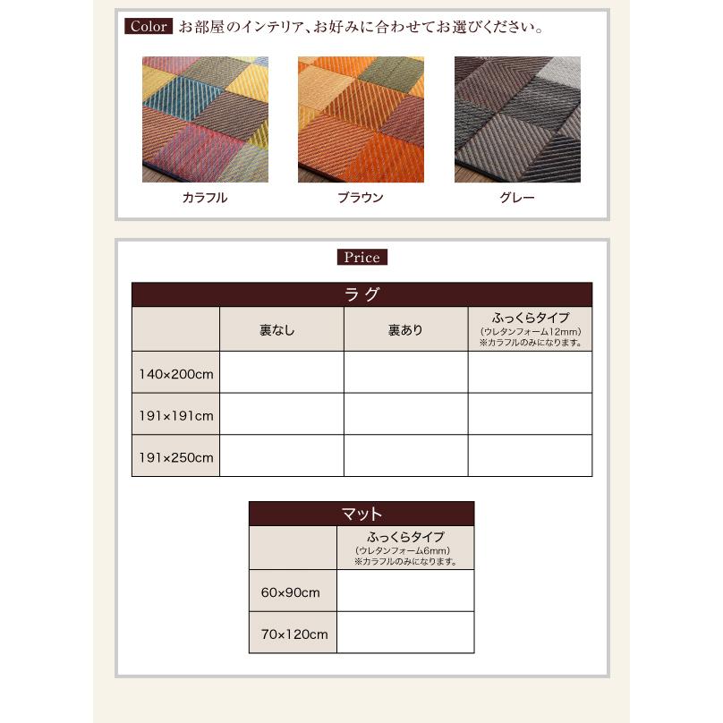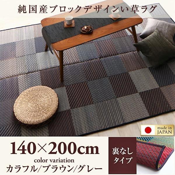 い草ラグ 裏地なし 140×200cm 自然素材 純国産ブロックデザイン おしゃれ
