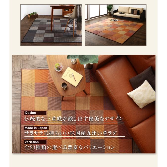 い草ラグ 裏地なし 140×200cm 自然素材 純国産ブロックデザイン 送料無料ラグ 純国産 い草ラグ サラサラ 三重織■ 三重織三重織とは、より繊細な模様を出すための伝統的な手法です。普通織に比べて縦糸を多く使用することで、より鮮明に色柄を表現することができます。■ 熊本県産い草使用されているい草は全て、い草の名産地である熊本県産のもの。国内の工場で熟練の職人たちがその確かな技で作り上げます。綺麗な水と肥大な大地で育ったい草は、なめらかで艶やかな表情を見せてくれるだけでなく、中身がしっかりと詰まっています。コシがあり、優れた耐久性があるので長くご愛用いただけます。<裏なしタイプ>裏なしタイプは昔ながらのい草本来の仕様。お持ちのラグやカーペット、畳の上に敷きたい方におすすめ。"}