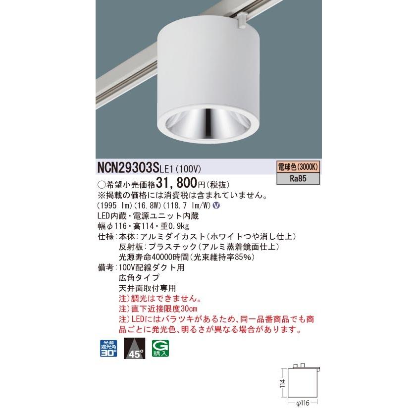 【法人様限定商品】パナソニック NCN29303SLE1 LED小型シーリングライト 天井直付型・配線ダクト取付型 ビーム角45度 広角 電球色