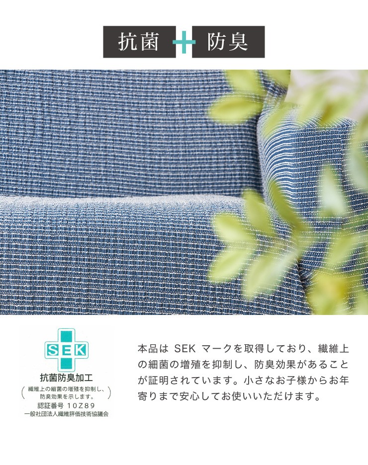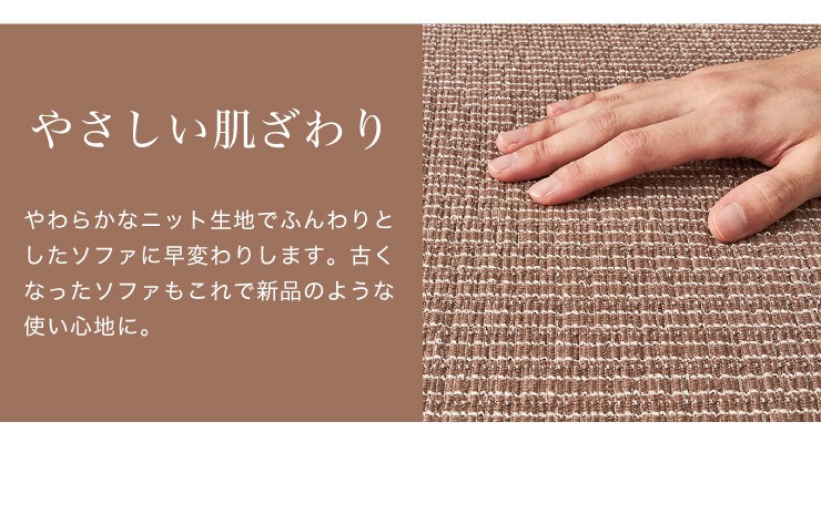 【内容】psyche(プシュケ)とは、ギリシャ神話の中で人間から神になる女神のことです。のちにギリシャ語で、サナギから美しく変容する「蝶」や、変化していく「心」を意味するようになりました。純国内生産にこだわり、本物のクオリティを追求したソファカバーです。ポリエステル素材がほとんどの従来人のソファカバーに対して、コットン比率を大幅にアップすることで抜群の肌触りと吸湿性を実現しました。またいつでも快適にご愛用していただけるようにも施してあります。高いストレッチ性で多くのソファにぴったりとフィットします。お手持ちのソファの汚れ防止はもちろん、時期に合わせたドレスアップとしても、是非ご活用ください。新開発素材を採用しています。収縮率180%の贅沢なストレッチ素材を使用。綿を76%配合した極上の肌触りと抜群の吸湿性で熱のこもりやすいウレタンや化繊、合成皮革等のソファに最適です。●素材ポリエステル72% 綿24% ポリウレタン4%●機能(SEKマーク取得)・ウォッシャブル<対応ソファサイズ>肘無3人掛け用)巾140cm〜200cm/高さ〜90cm/奥行80cm〜90cm"}