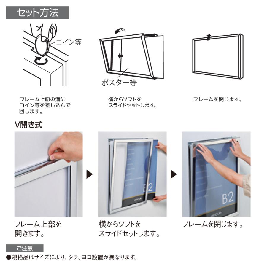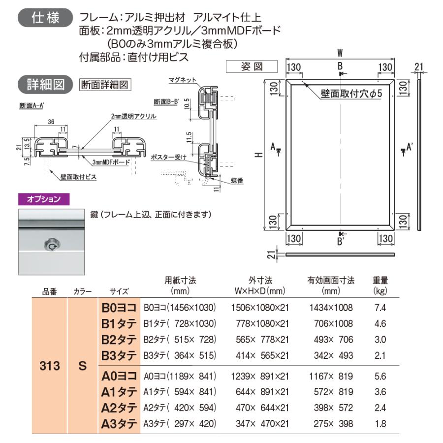 B0サイズ対応のV開き構造フレーム。開閉幅を最小限に抑えたV開き構造で省スペースでもポスター交換ラクラク。駅構内などの広告ポスター交換が安全&簡単に行えます。用紙寸法 : A3(297×420mm)外寸法 : 347×470×21mm有効画面寸法 : 275×398mm重量 : 1.8kgアタッチメント金具 : スチールクロムメッキ仕上げ面板 : 3mm透明アクリル/3mmアルミ複合板付属品 : 直付け用ビスアルモード カタログ(Vol.11) 50ページ掲載商品メーカー品番 : 313メーカー : 株式会社ベルク