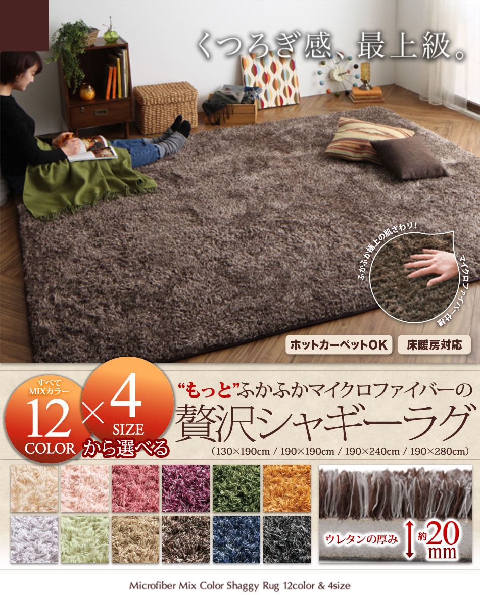 ラグ ラグマット シャギー シャギーラグ 厚手 マイクロファイバー 長方形 オーバル 楕円 円 円形 サークル 130 190 240 280 床暖房 こたつ 軽量 ウレタン