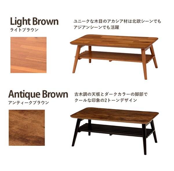 | 素材 | 天板:化粧繊維板(ブラウン)ウォールナット突板(ホワイトウォッシュ)天然木突板(アカシア)アカシア集成材突板(アンティークブラウン)ダイレクトプリント 、脚:ラバーウッド |