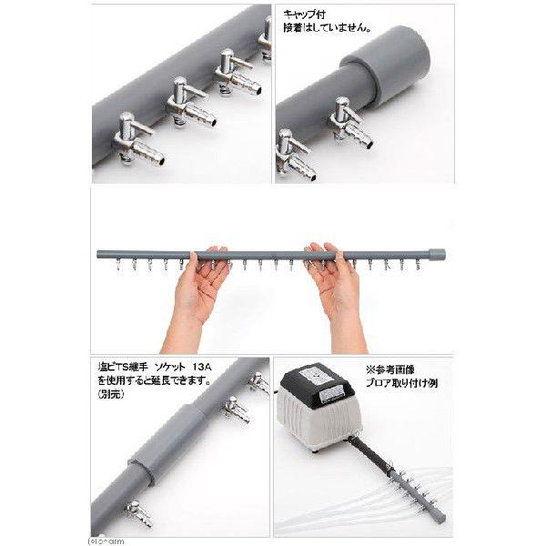 | ご使用方法 | 【安永電磁式エアーポンプ(ブロワー) AP−40(省エネ型)】 吐出口にはVP13パイプ(外径18mm)又はVP13パイプ継手(内径18mm)を別途ご用意し配管してください。 ※詳しい使用方法は商品に付属の取扱説明書をご覧ください。 【塩ビパイプ 一方コック付き 吐出口5片側キャップ付き】 ●ブロワーに接続し、各コックにエアーチューブを接続して使用します。 ●コックのツマミを調節することで、水槽に供給するエアーの量を調節することができます。 ●延長する場合は、塩ビTS継手 ソケット 13A(別売)を使うと延長できます。 |