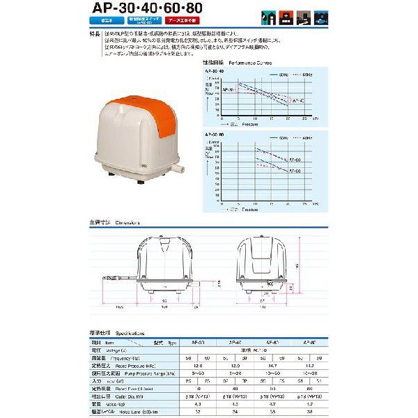 | 仕様 | 【安永電磁式エアーポンプ(ブロワー)AP−40(省エネ型)】 定格電圧:100V 50/60Hz 消費電力:32W 風量:40L/分(常用圧力14.7kPaで使用時) |