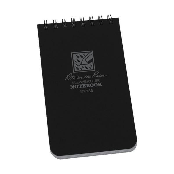 【商品名】 (まとめ) ライトインザレイン トップスパイラルノートブック ユニバーサル ブラック 735 1冊 【×10セット】 【ジャンル・特徴】 紙に特殊なコーティングがされており、いかなる天候下でも使用できる野外作業用のメモ帳です。 [ 735 ]"} ■商品内容