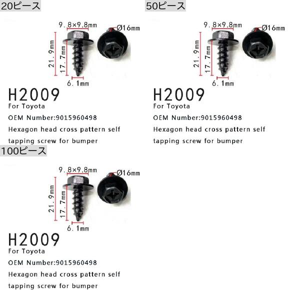 スクリュー 9015960498 適用: トヨタ 六角形 ヘッド クロス パターン セルフ タッピング スクリュー バンパー 50ピース AL-MM-0709 AL