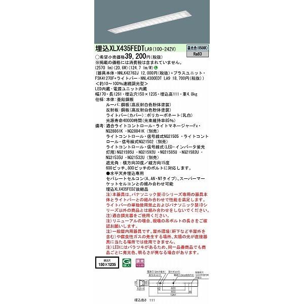 - XLX435FEDTLA9 パナソニック 埋込ベースライト 40形